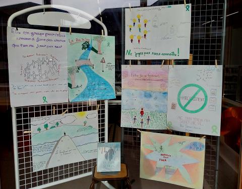 Les 4eB, après la lecture cursive de la nouvelle réaliste "Le Papa de Simon" (tiré des Contes de la Bécasse, de Maupassant, 1883), ont imaginé une campagne d'affichage visant à lutter contre le harcèlement. Ils étaient invités à réfléchir sur les liens entre littérature et question de société et devaient faire apparaître quelques références littéraires à la nouvelle, tout en pensant à un visuel "percutant". L'exposition de leur travail est à découvrir au CDI !